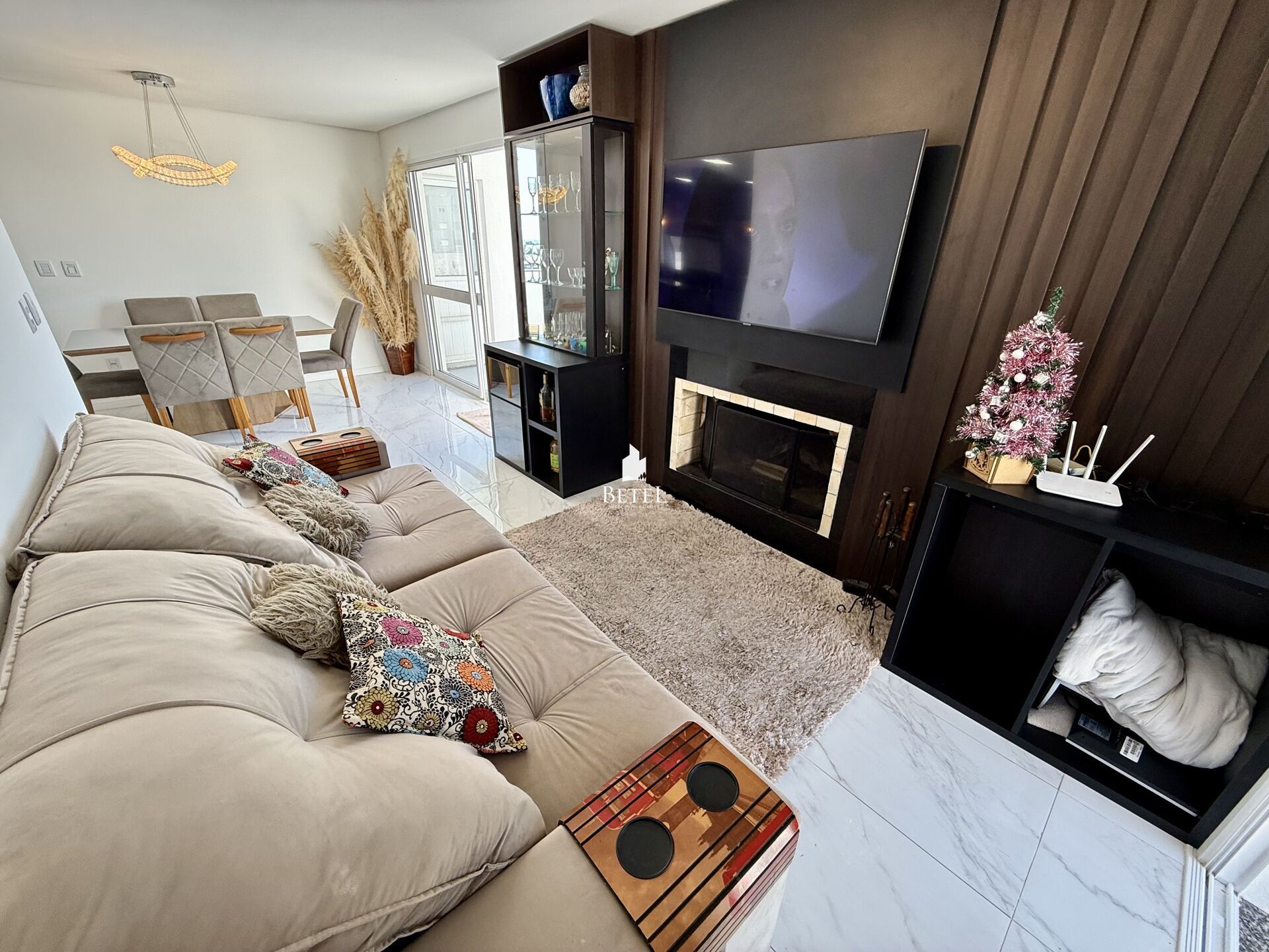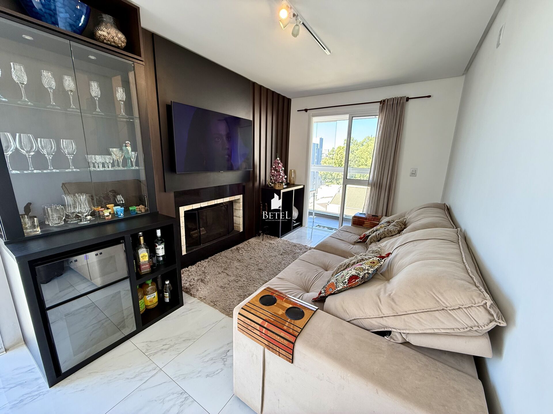 Betel Negócios Imobiliários vende: Apartamento com terraço em andar alto no bairro Colina Sorriso, mobiliado, possui 132,62 m² de área privativa com um terraço gourmet com churrasqueira, lavabo e espera para cozinha (esse espaço pode ser coberto), tem 03 dormitórios, sendo 01 suíte, banheiro social, sala de estar com lareira, sacada com churrasqueira, cozinha integrada com a sala, depósito e 02 vagas de garagem individuais.
