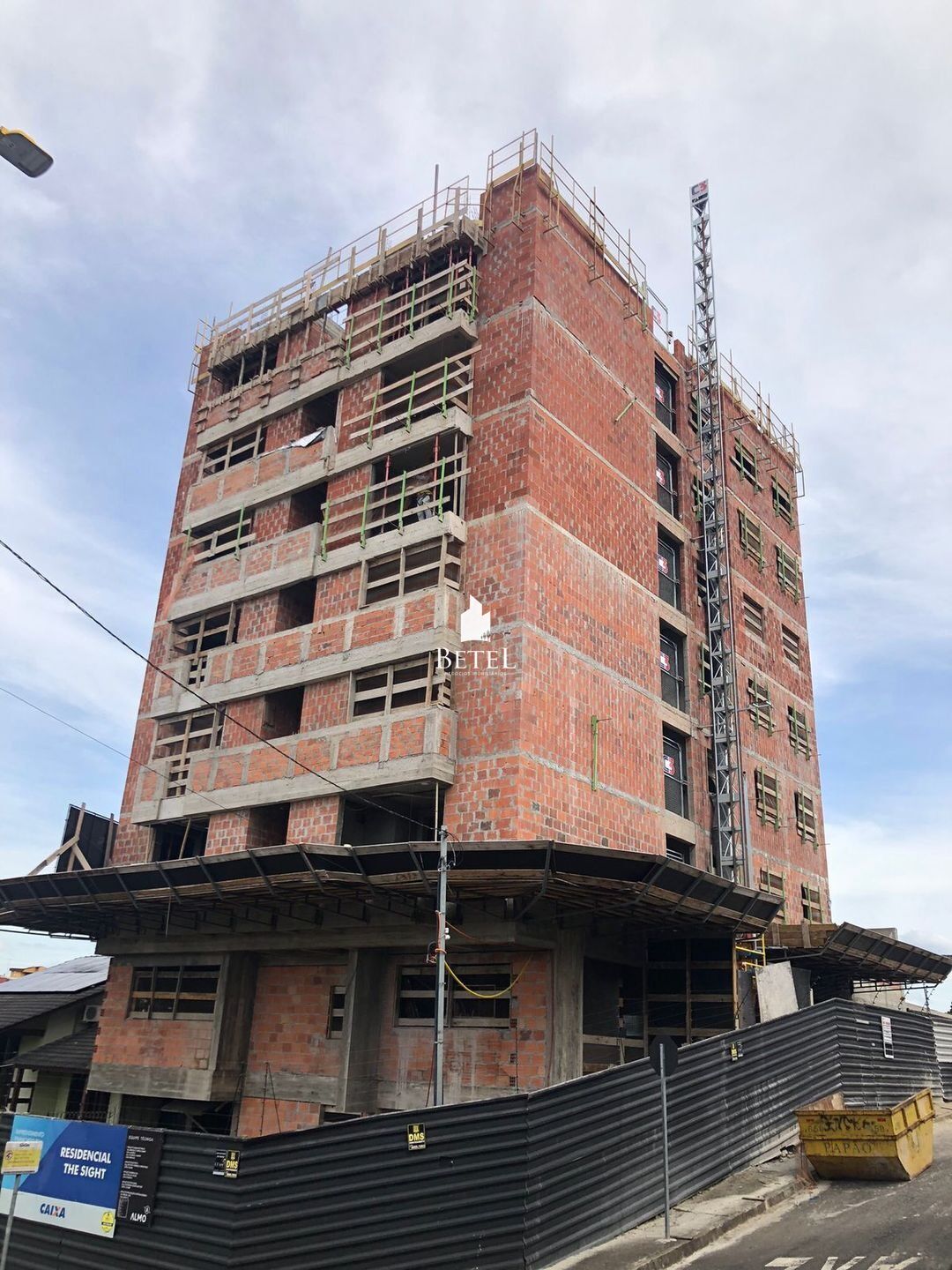 Prédio com elevador, salão de festas, brinquedoteca e área de lazer.