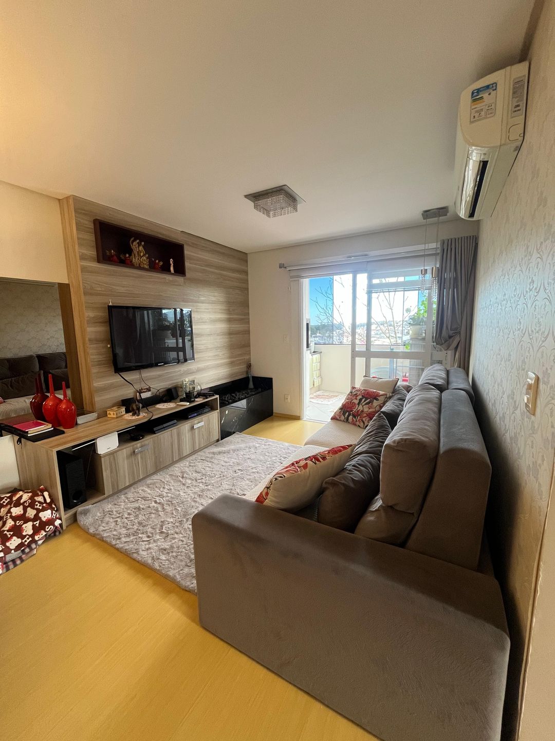 Ficam todos os móveis fixos sob medida.