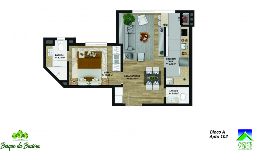 1 Dormitório, sendo 1 Suíte1 Banheiro1 Vaga