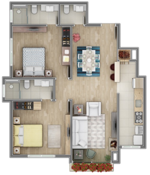 2 Dormitórios, sendo 2 Suítes2 Banheiros1 Vaga