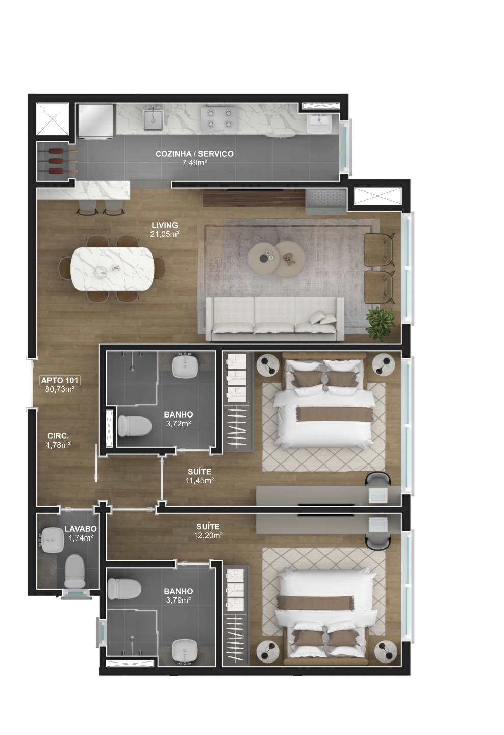 Área Privativa84,64m²