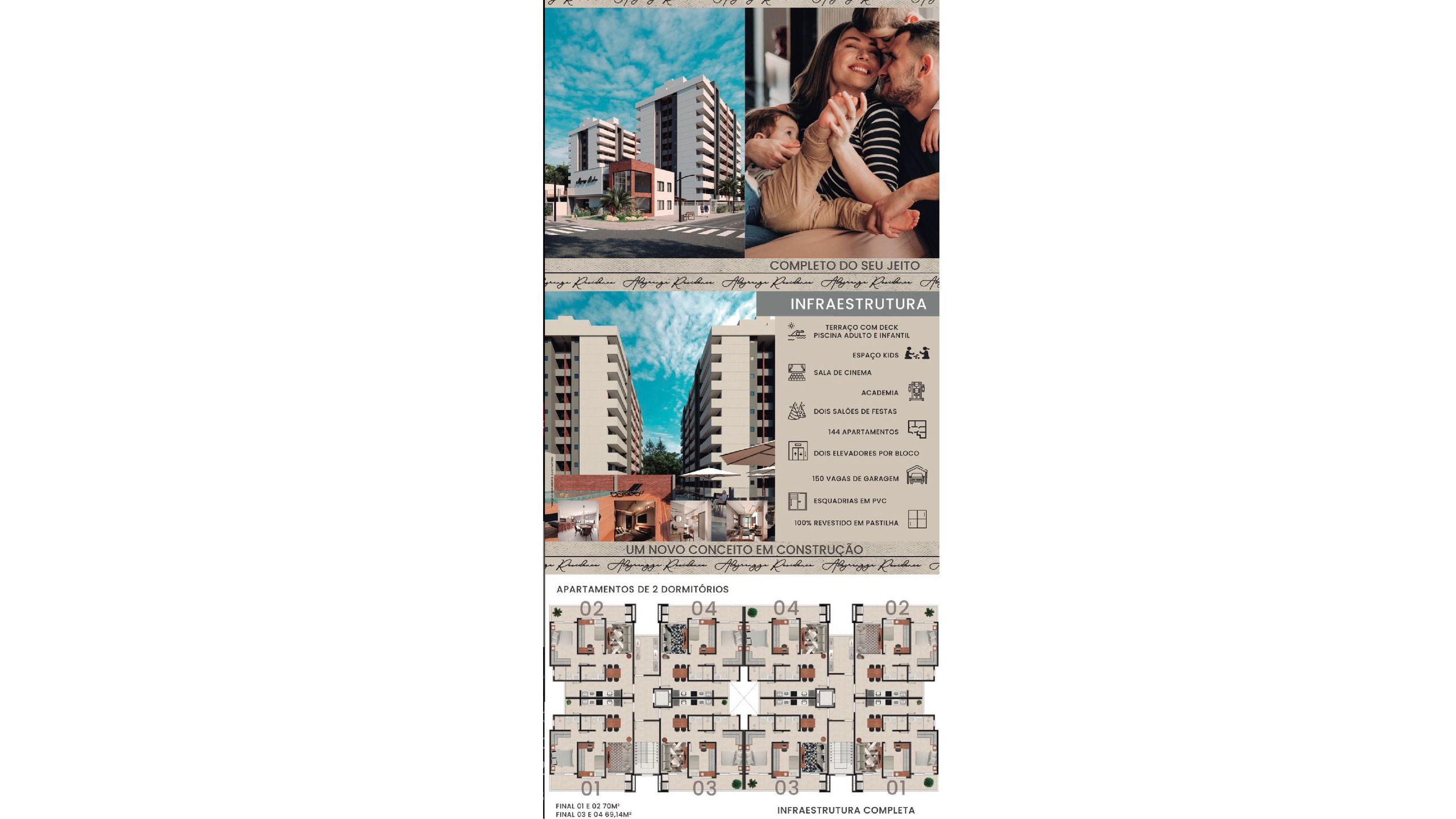 2 Dormitórios, sendo 1 Suíte2 Banheiros1 Vaga