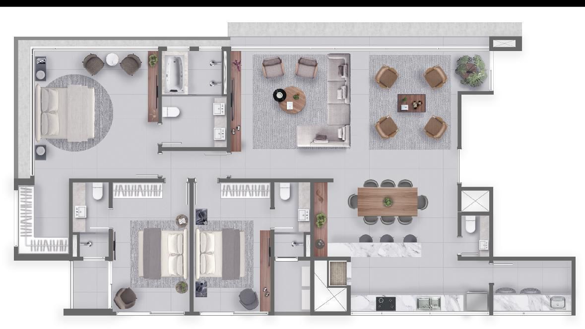 3 Dormitórios, sendo 2 Suítes4 Banheiros