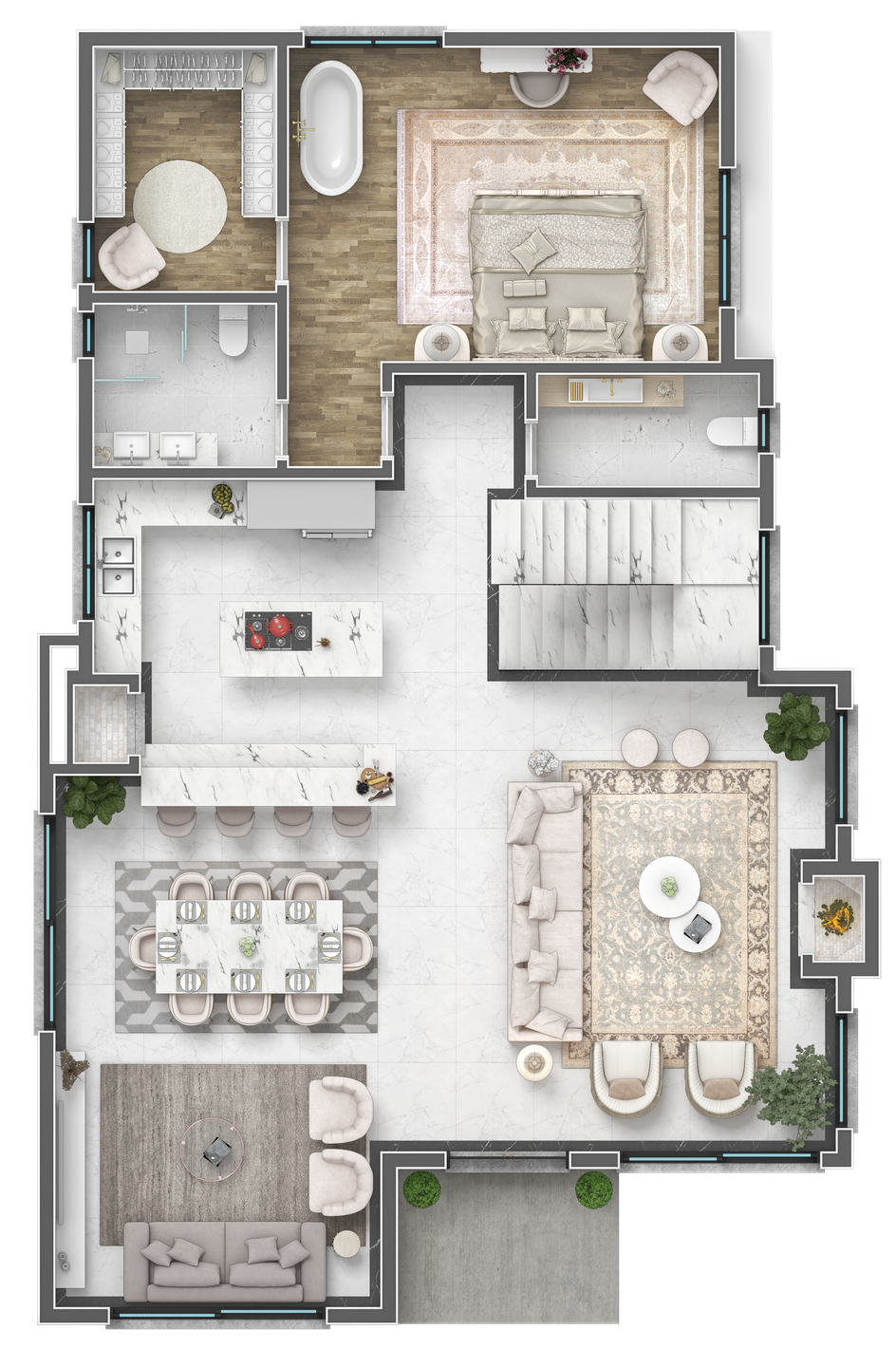 O neoclássico está impregnado em todas as facetas desta propriedade preciosa, que será entregue com uma seleção magistral de acessórios e acabamentos finos, refletindo sua devoção ao bom gosto intransigente.