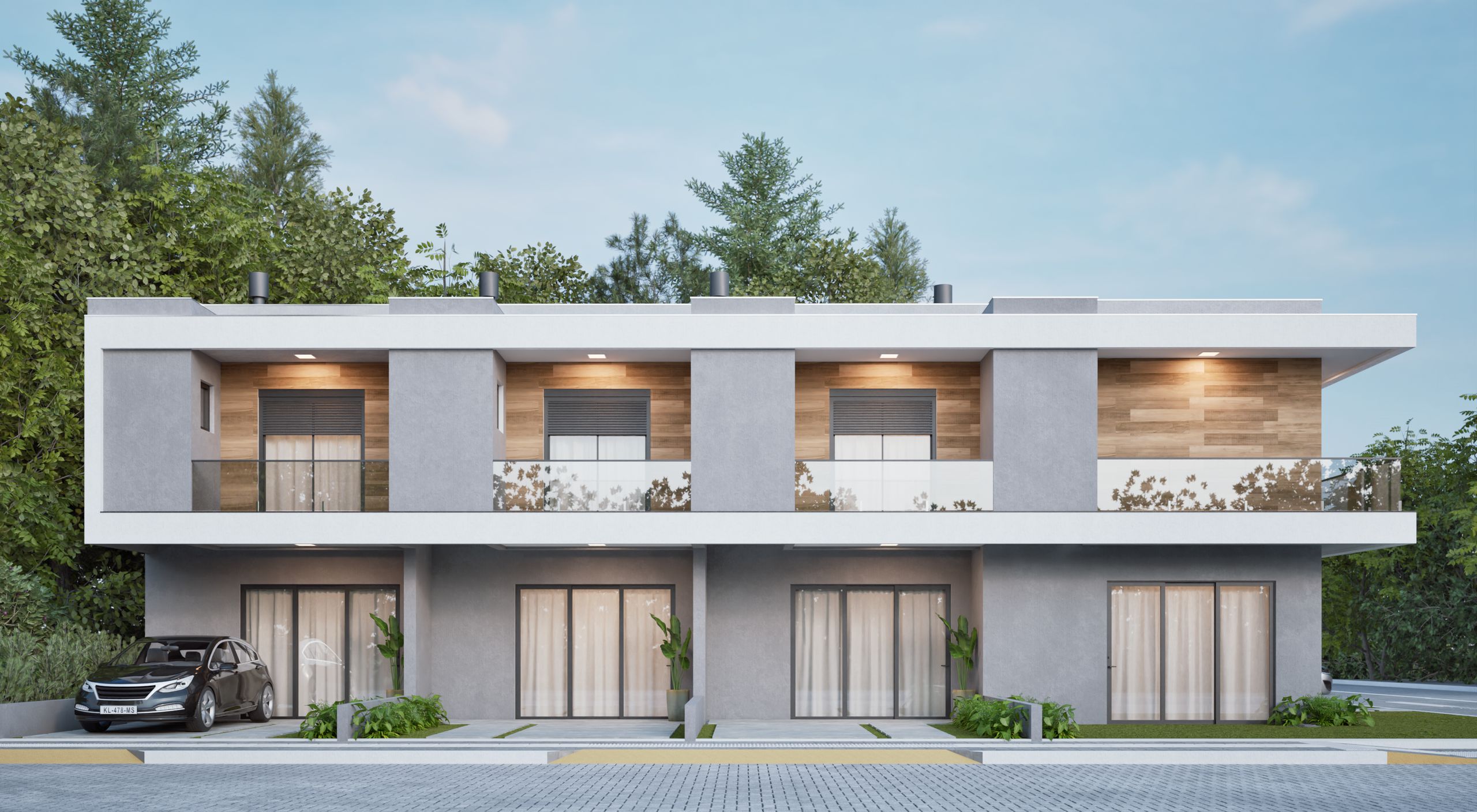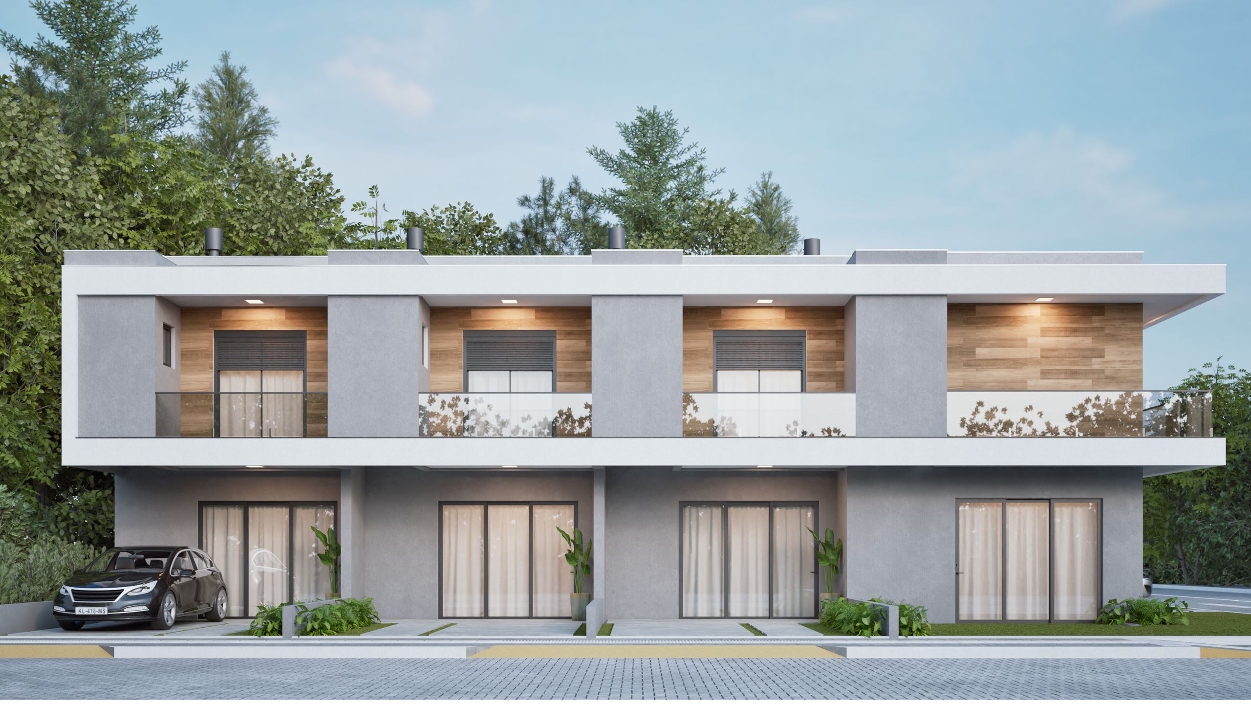 - Andar térreo superior Salas de estar e jantar, cozinha, área de serviço, lavabo, churrasqueira e varanda. Vaga de estacionamento no jardim