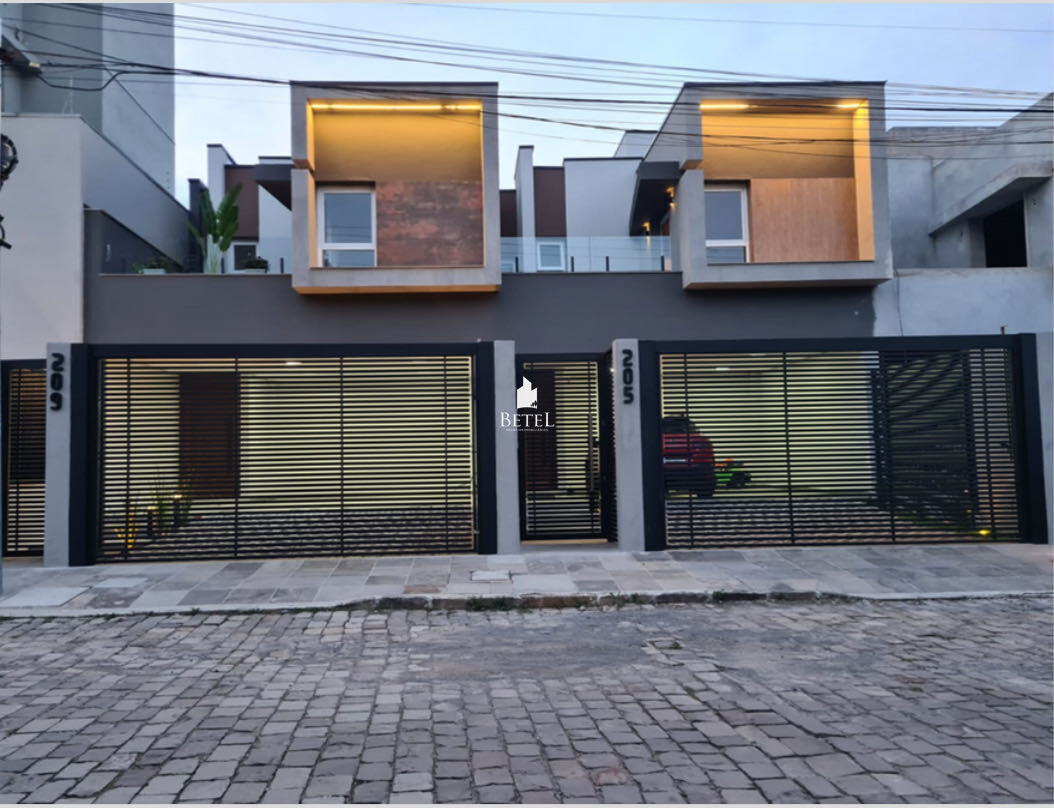 Betel Negócios Imobiliários vende: Sobrados no bairro Sagrada Família, com 160,80 m² de área construida, possui 03 (três) dormitórios, sendo 01 suíte, banheiro e lavabo, living integrado com sala de estar e cozinha, espaço gourmet externo com churrasqueira e 02 (duas) vagas de garagem lado a lado.